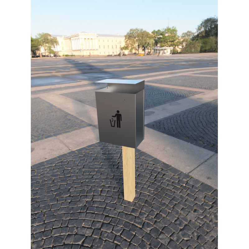 Objet : Poubelle à suspendre avec capot, fermeture par cadenas.