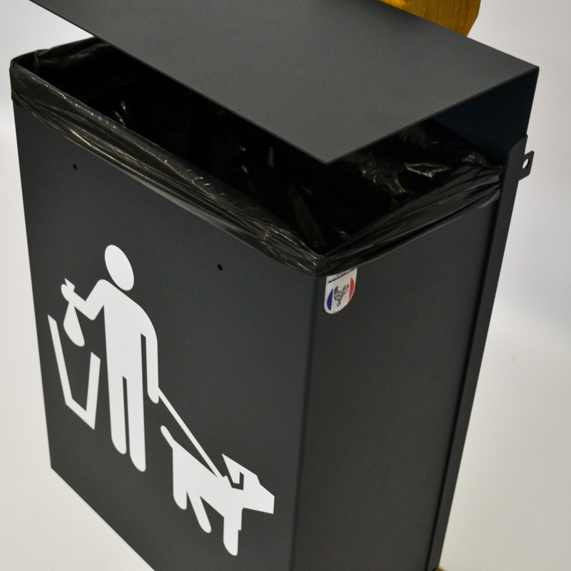 Objet : Poubelle à suspendre avec capot, fermeture par cadenas.