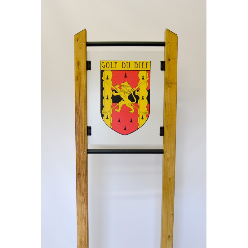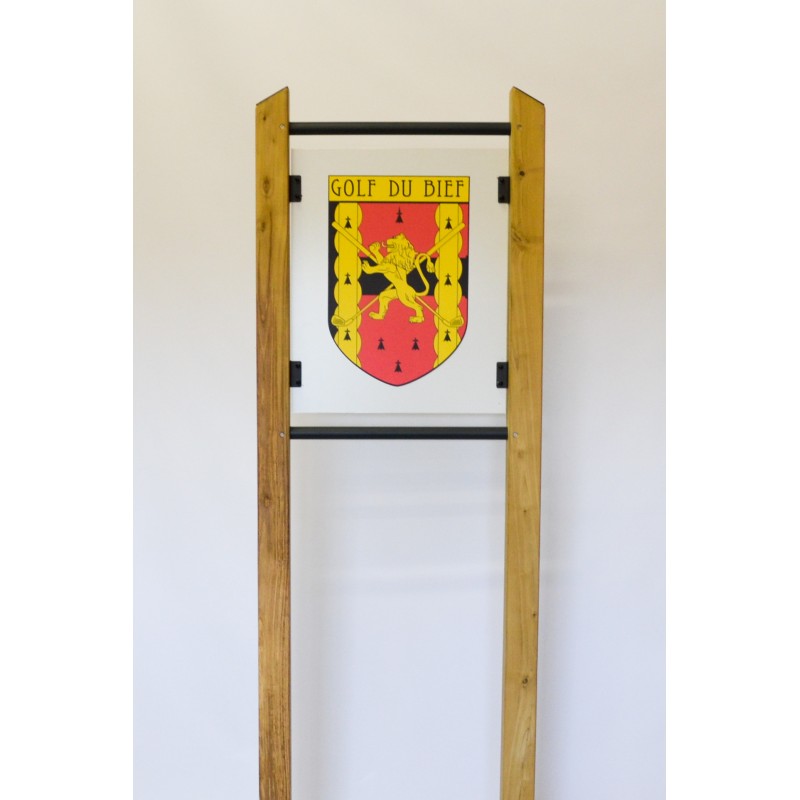 Objet : Panneau signalétique pour afficher vos informations de départ avec traverse alu double, vos informations touristiques. En Robinier massif il peut être scellé ou installé en fourreaux. Le panneau est facilement interchangeable.