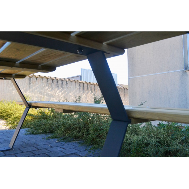 Fabrication : Réalisation en Robinier massif PEFC et Acier avec primaire anti corrosion et finition époxy RAL 7016.
