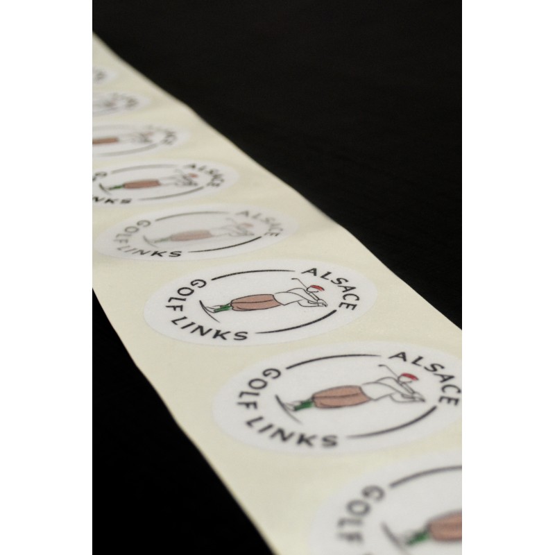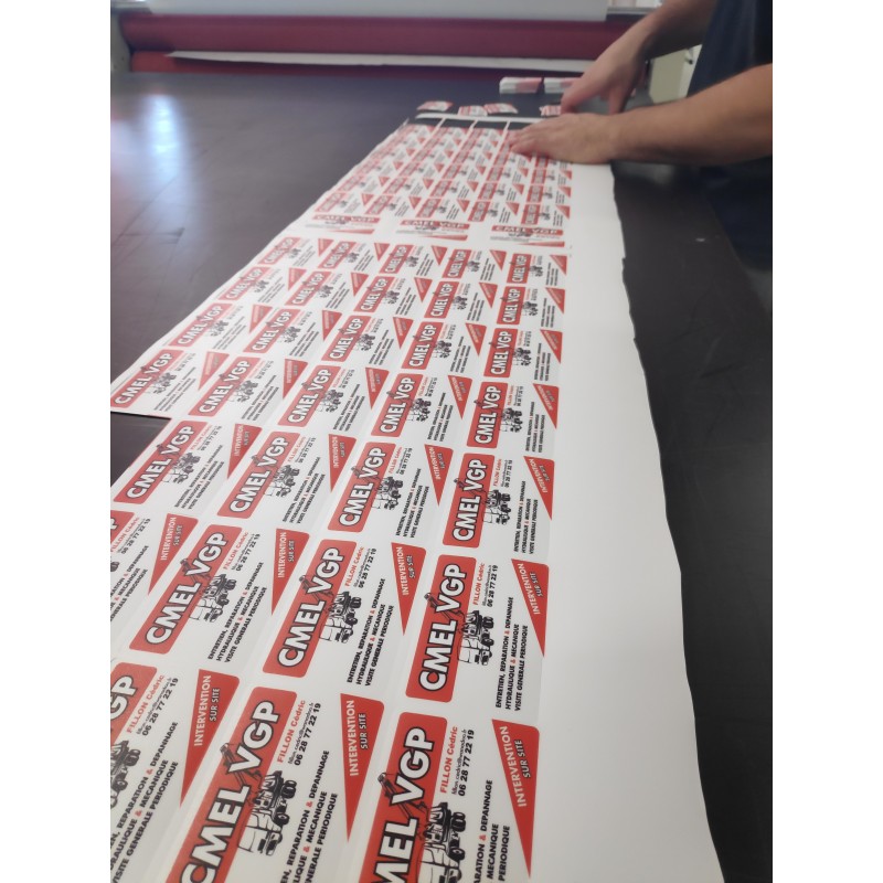 Impression quadri sur vinyle polymère, message et découpe à la forme au choix. Pose sur tous supports lisses.