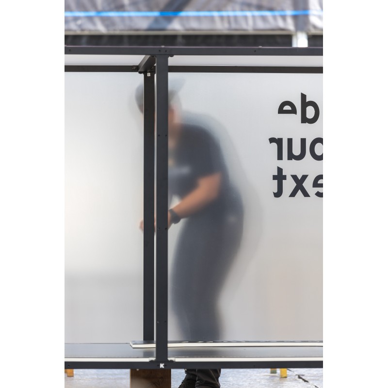 Fabrication : Structure en acier finition époxy, habillage en PEHD et PETG personnalisé par marquage adhésif.