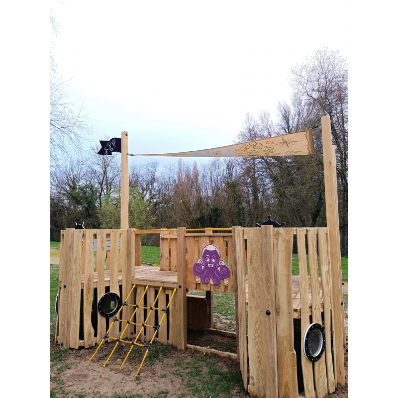 Objet : Découvrez l'univers de la navigation, des milieux marins et des pirates. Cette aire de jeu thématisée autour du voyage en mer, des aventuriers est une histoire à elle toute seule.